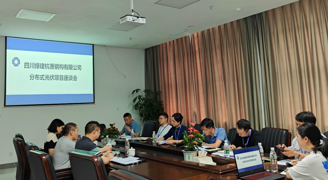 2022年6月30日上午,四川綠建杭蕭鋼構(gòu)有限公司(以下簡稱:綠建杭蕭)與四川省能源投資集團(tuán)有限責(zé)任公司相關(guān)負(fù)責(zé)人共同召開分布式光伏項(xiàng)目座談會。綠建杭蕭總經(jīng)理古敏同志攜領(lǐng)導(dǎo)班子與相關(guān)部門負(fù)責(zé)人參加會議。